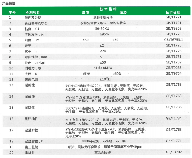 該產(chǎn)品由無溶劑環(huán)氧樹脂、改性樹脂耐酸堿顏料、耐酸堿填料、特種添加劑及有機溶劑通過精心設(shè)計而成的A組份,采用進口改性胺類固化劑作為B組份組合成的2K型反應(yīng)型涂料。